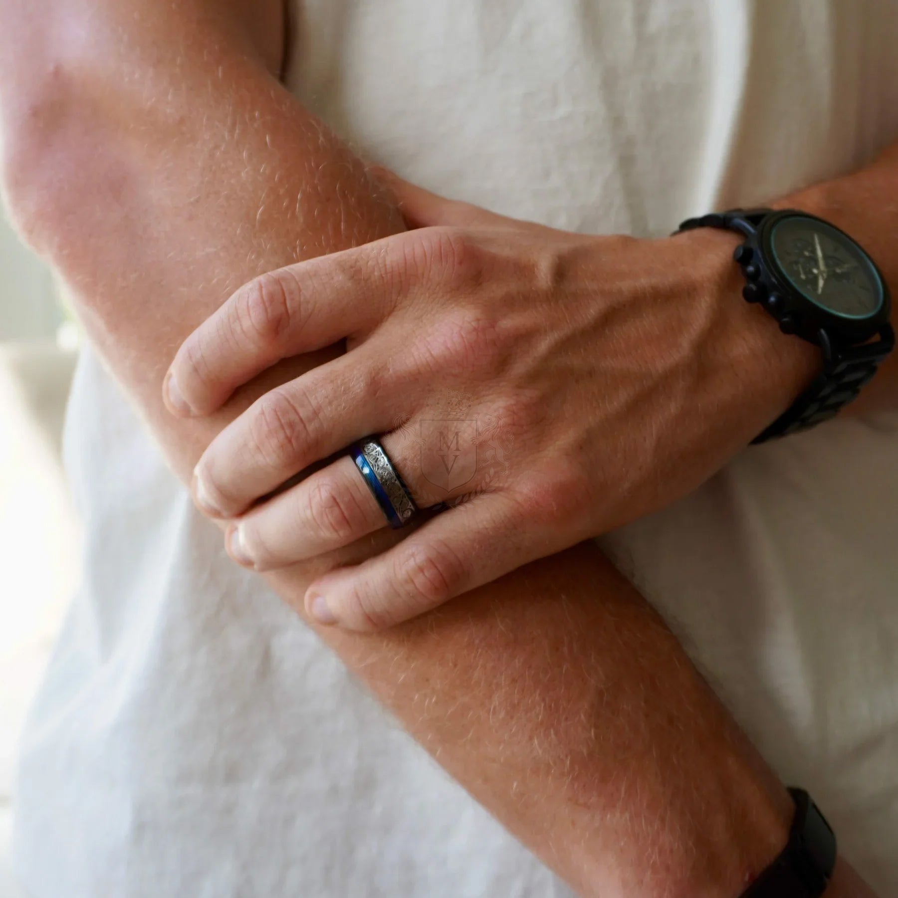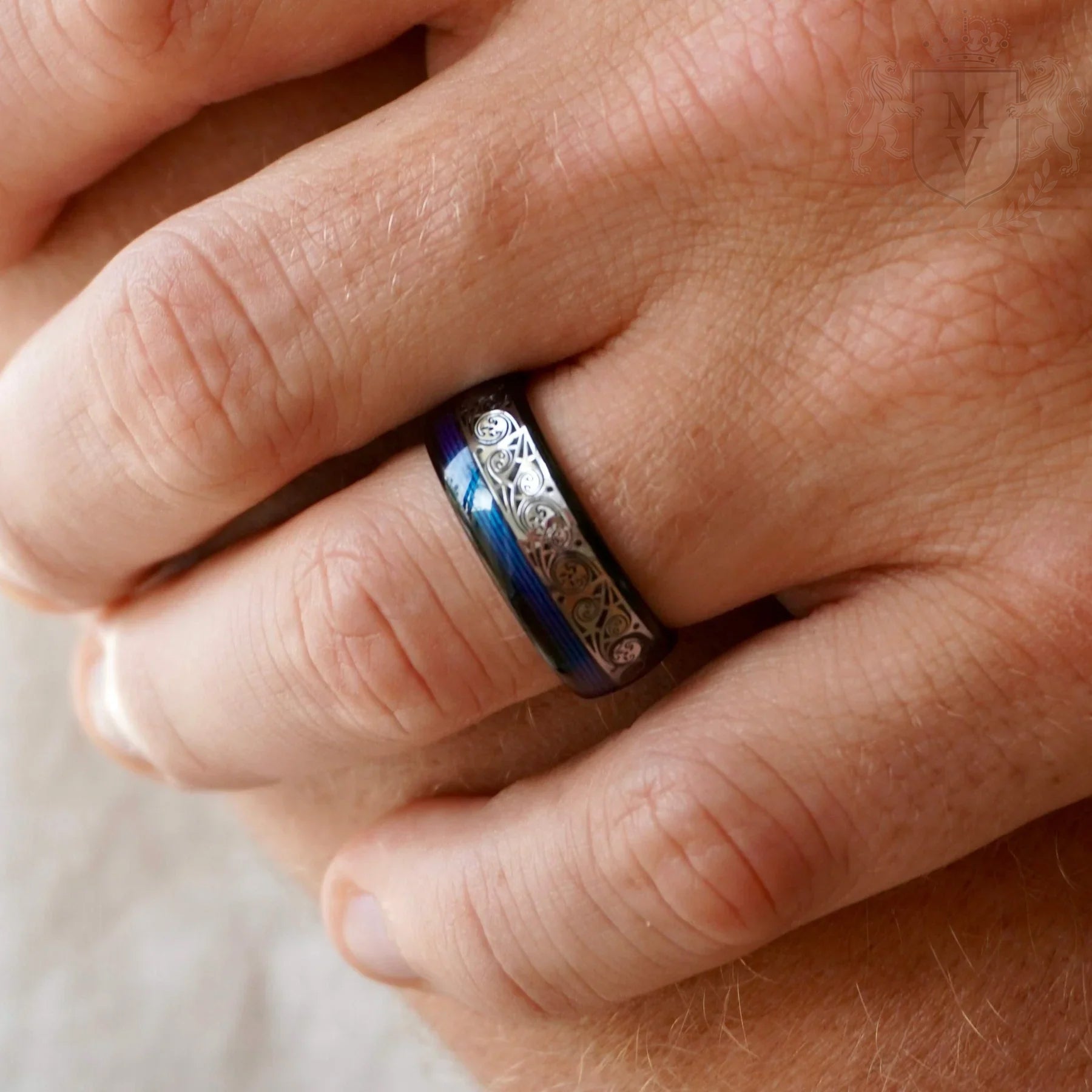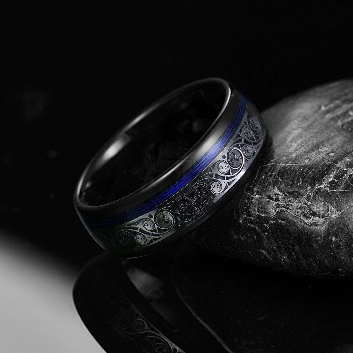 Inspired by the boundless sky and the depths of the ocean, Aether is a fusion of resilience and tranquility. Its black tungsten body exudes strength, while the striking blue inlay flows like an untamed current. A silver wave pattern cuts through, representing harmony between power and peace. Designed for those who move with quiet confidence yet leave a lasting impression, Aether is a statement of unwavering presence and effortless style.