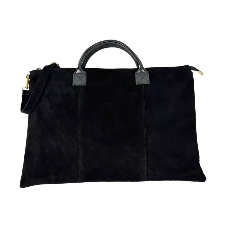 Schwarze italienische Schultertasche aus Wildleder Stilvoll & Alltagstauglich