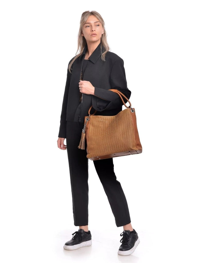 Italienische Leder Umhängetasche Damen - praktischer Shopper