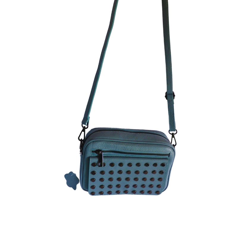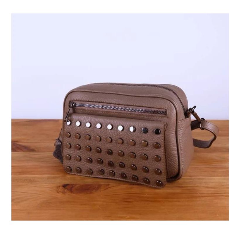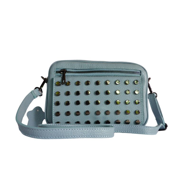 Diese italienische Handtasche aus hochwertiges Leder kombiniert stilvolles Design mit praktischer Funktionalität. Die dekorativen Nieten verleihen ihr eine trendige Note, während der verstellbare Riemen das Tragen als Crossbody-Bag oder Schultertasche ermöglicht.