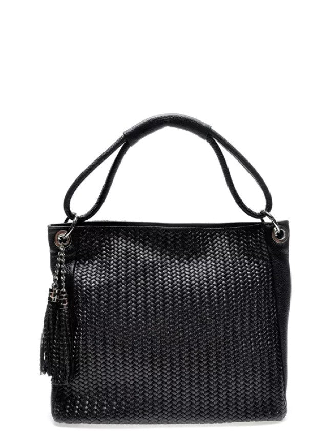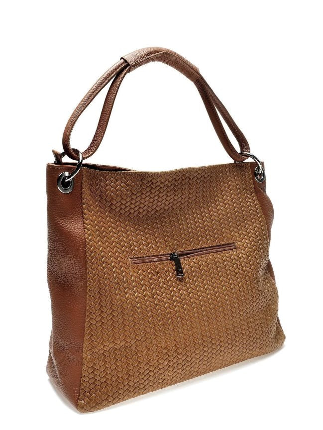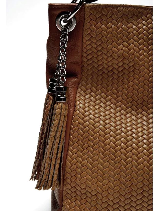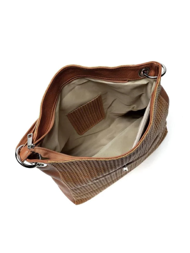 Damen Umhängetasche aus Leder in gewebtem Design