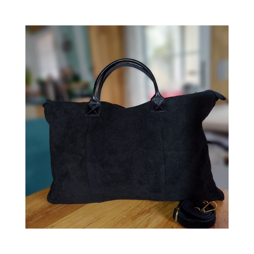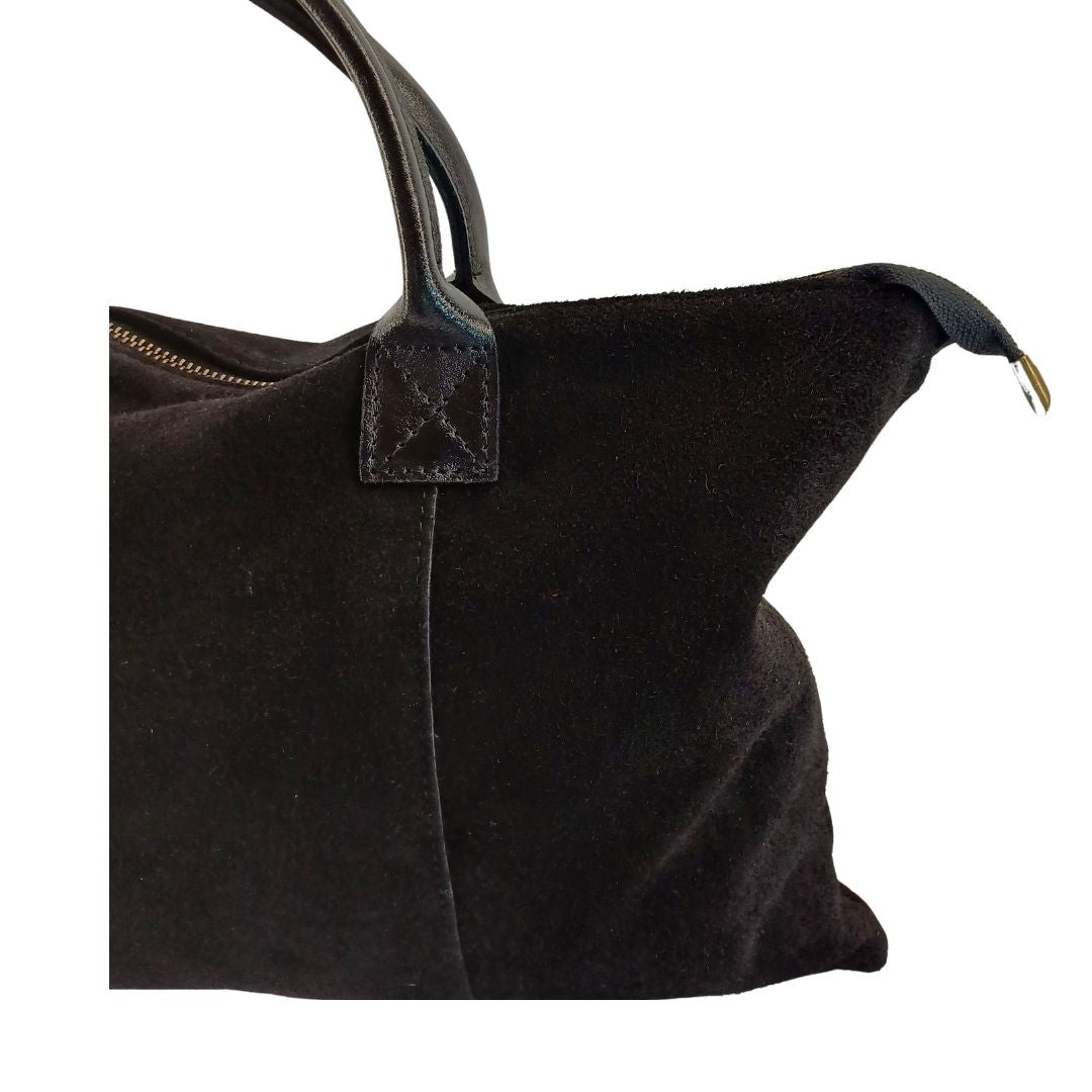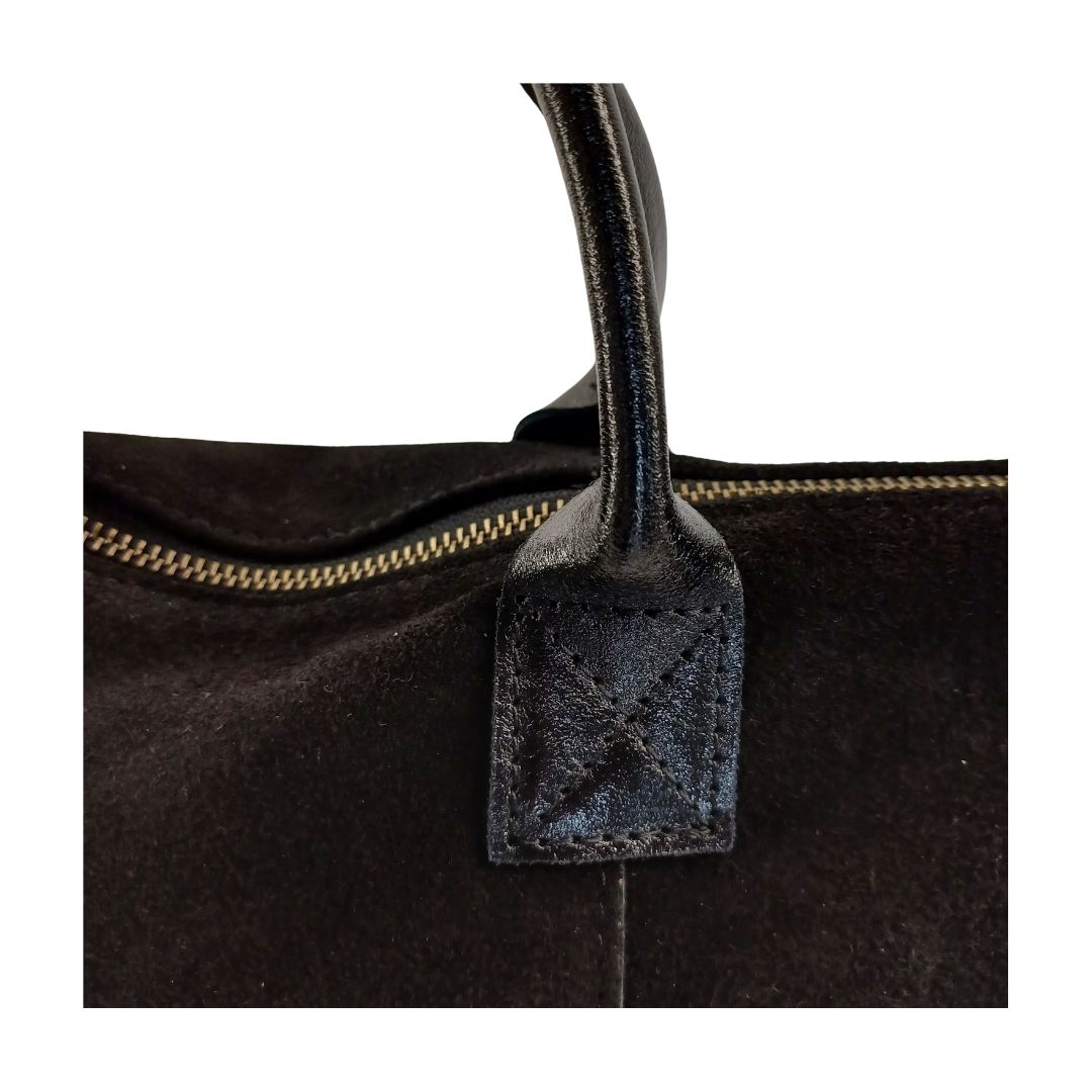 Schwarze italienische Schultertasche aus Wildleder Stilvoll & Alltagstauglich