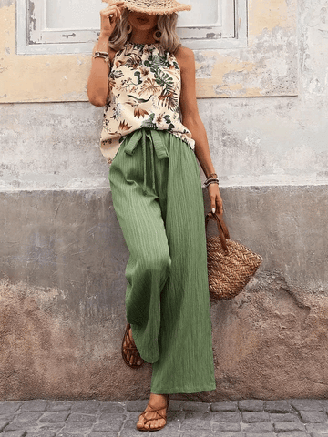 • Stampa Botanica Esclusiva: Non è la solita stampa estiva. Foglie, fiori e felci intrecciati in armonia su un fondo avorio creano un effetto artistico. Ti fa sembrare di aver appena passeggiato in una villa siciliana in fiore. È un'opera d'arte da indossare.