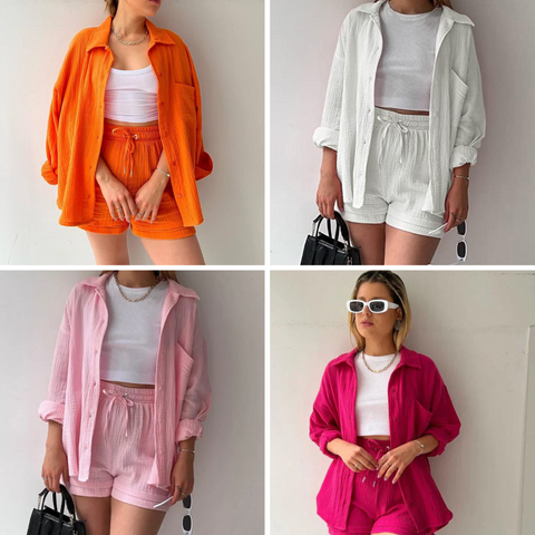 Camicia dentro + shorts + mocassini in pelle (Brand: Superga) + cintura slim