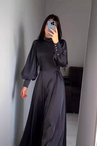 Raso raffinato, maniche audaci: l'abito Neryn è sinonimo di eleganza!