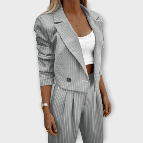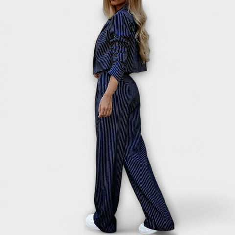 ✅Eleganza senza sforzo: Questo completo a righe offre un fascino raffinato ma moderno, perfetto per fare un'impressione duratura. La giacca sartoriale aggiunge un tocco di raffinatezza, mentre i pantaloni a vita alta creano una silhouette lusinghiera. Sia che siate a una riunione o a un evento sociale, questo completo eleva senza sforzo il vostro stile.