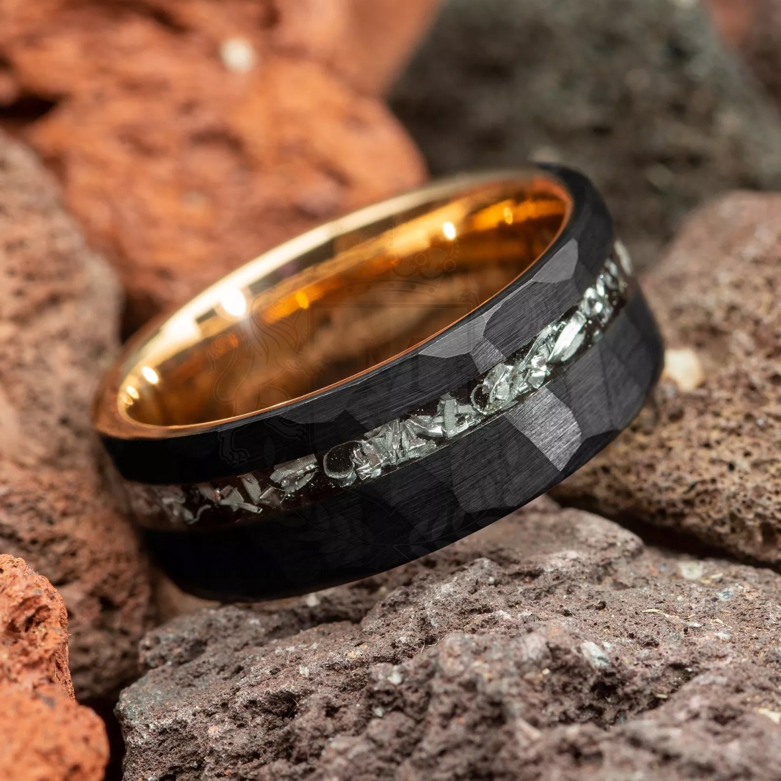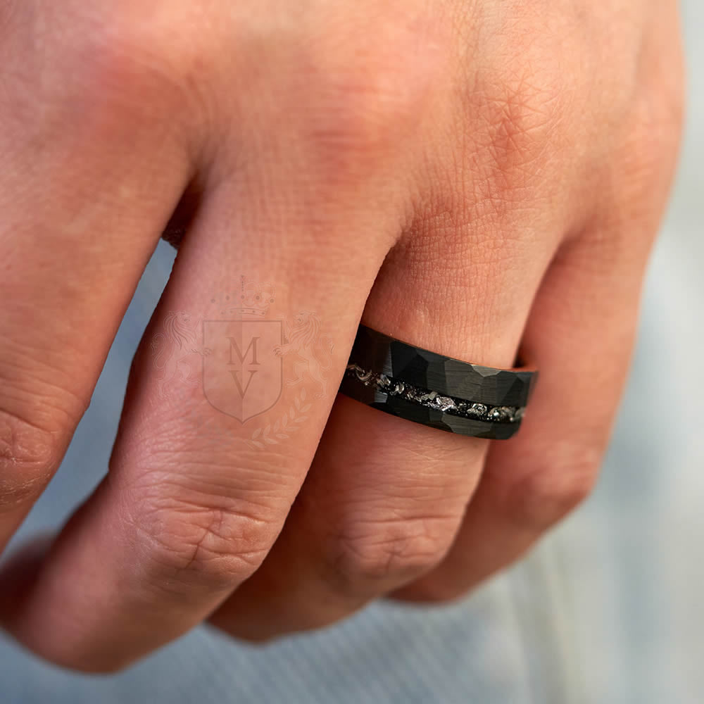 Materials: Tungsten carbide, genuine meteorite inlay