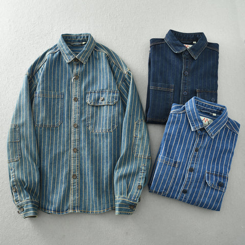 ✅Facileda abbinare e da abbinare: I toni neutri del denim con sottili strisce a contrasto la rendono facile da abbinare a diversi capi di abbigliamento. Sia che lo si indossi con pantaloni cargo, jeans o chino, valorizza il vostro outfit con il minimo sforzo. Un capo base che vi fa apparire eleganti senza pensare troppo al vostro look.