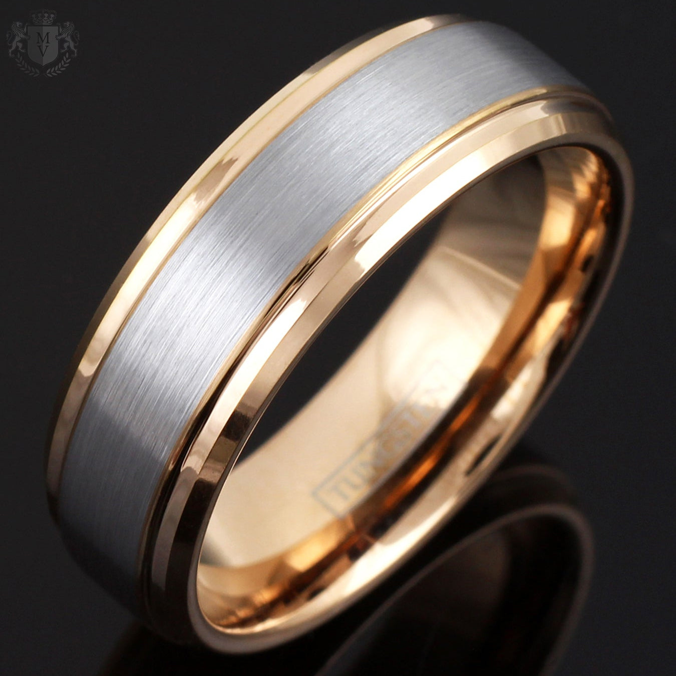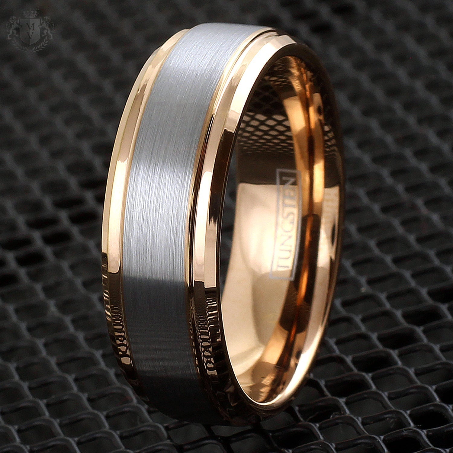 Lucent is the art of balance, captured in tungsten. With its brushed silver-toned center and polished rose gold-colored edges, this ring brings together softness and strength, light and warmth. The stepped design adds just the right touch of detail, making it a refined choice for those who appreciate timeless design with a modern edge. Durable, elegant, and unmistakably enduring — Lucent is crafted to last with grace.