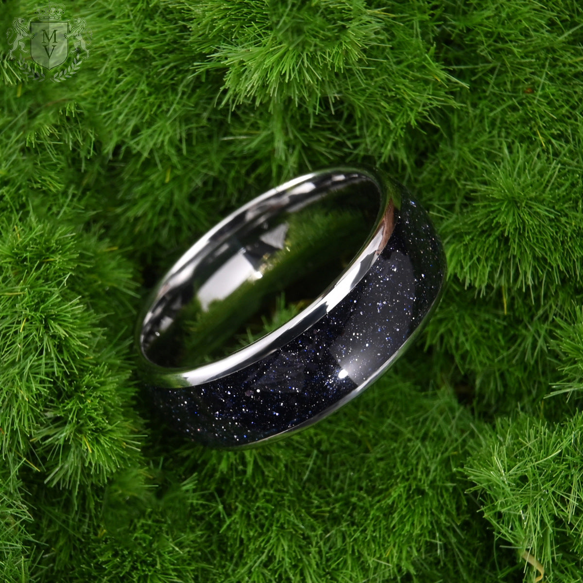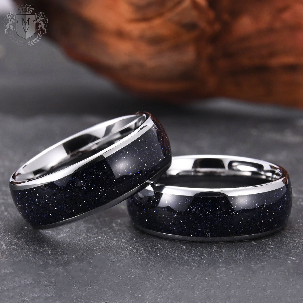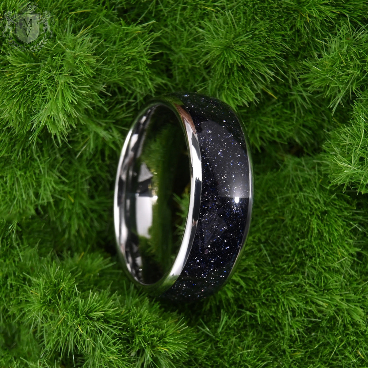 Nebula draws inspiration from the mysteries of the cosmos, offering a mesmerizing visual experience. Crafted from durable tungsten carbide, this ring features a stunning galaxy-inspired design with glittering specks that evoke the night sky's endless beauty. The sleek polished edges and starry pattern offer a captivating contrast, making Nebula a unique statement of strength and individuality. Its comfortable fit ensures it's perfect for everyday wear or as a bold wedding band, symbolizing infinite possibilities and timeless elegance.