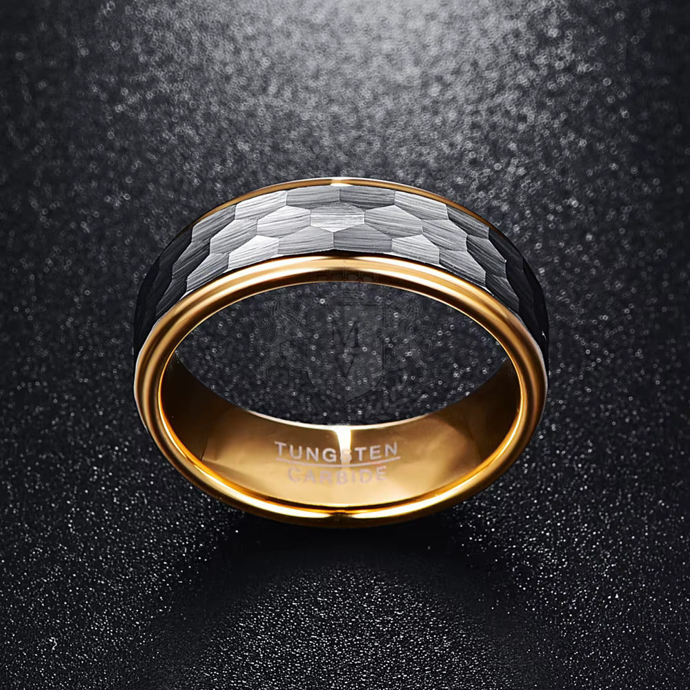 Exuding quiet authority and refined elegance, Sovereign is crafted for the modern man who commands respect without a word. Its premium tungsten carbide foundation offers unmatched durability, while the brushed silver bevel plate provides a sleek contrast against the rich gold outer ring. Designed for both style and comfort, Sovereign is more than a ring—it’s a testament to prestige, strength, and timeless sophistication.